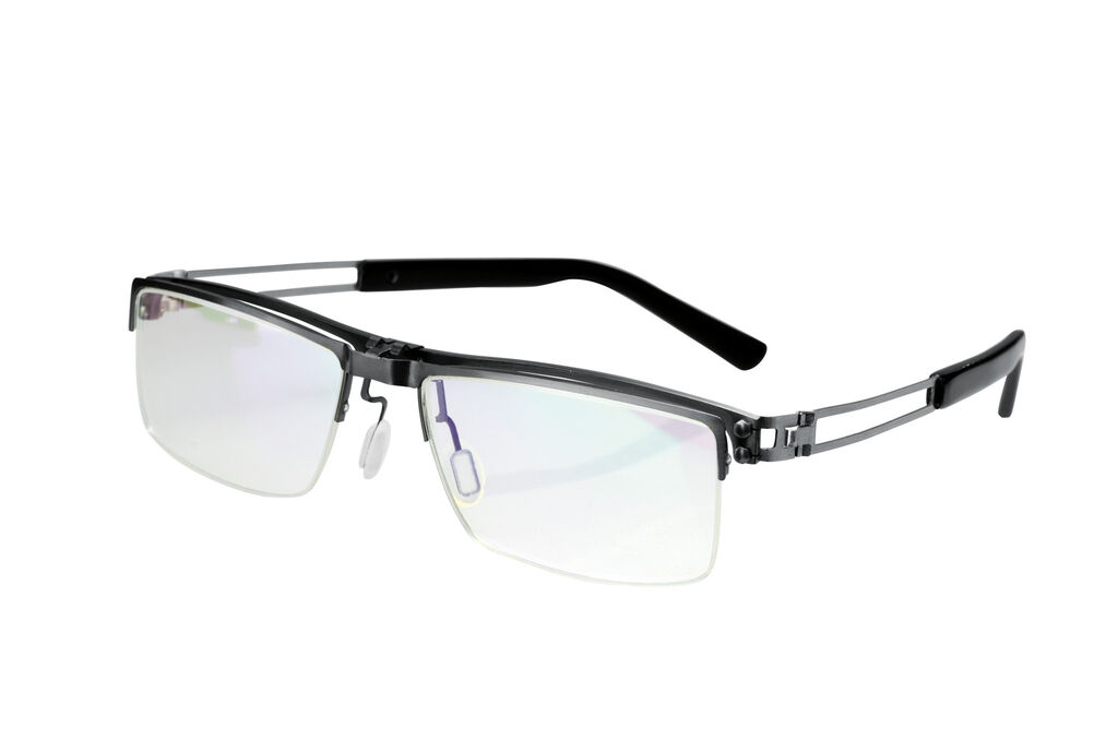 Eyelet Flip is a pair of glasses designed for the widespread condition of presbyopia. Many middle-aged patients experience difficulties with progressive-addition lenses and need to remove their glasses when reading or engaged in close-range activity. With the Eyelet Flip, this is no longer necessary, because the glasses allow wearers to flip up the lenses when necessary. The lens construction is attached to the top bar with a screwless, spring-like hook structure at the centre of the frame.