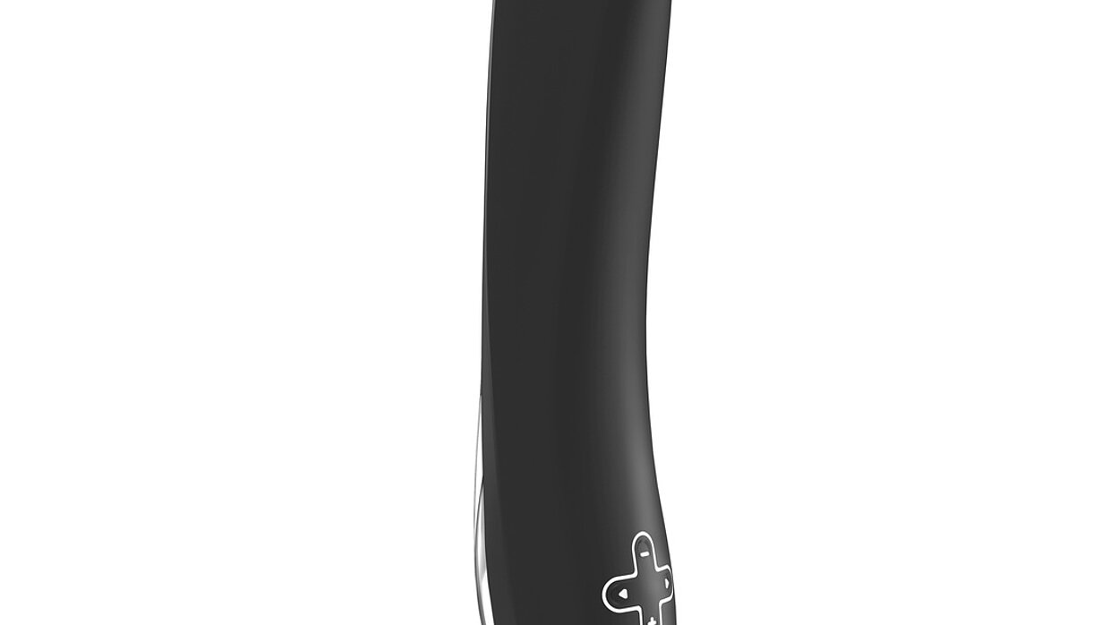 The F11 is an oval-shaped vibrator accentuated by feminine features. Its outer surface is characterised by the sinuous interplay between a smooth, glossy expanse and the velvety-soft, matte silicone. The slender, silvery element is ergonomically positioned and adjusts the powerful motor.