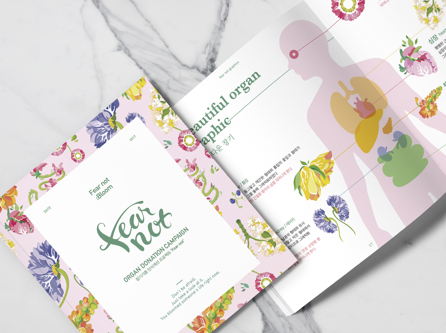 In Korea, the rate of actual donation is relatively low compared to other countries. Because of Korea’s Confucian culture, people are hesitant or fearful of organ donation. The FEAR NOT campaign hopes to alter negative perceptions towards organ donation through a design concept that conveys an uplifting message. The design concept deliberately exposes the organs in the human body with an entirely new and positive visual expression. The term ‘fear not’ is very similar to the Korean phrase ‘Pi-eo-na’ (피어나), which means ‘come into bloom.’ By visualising each organ as blooming flowers, the value and beauty of organs are translated into graphics to lower fundamental fear. The campaign carries a message to the public that organ donation is like a new bloom for other people’s lives. Instead of a sacrifice, it should be seen as a precious, self-directed and life-giving act.  Red Dot Award: Design Concept | Concept | Education