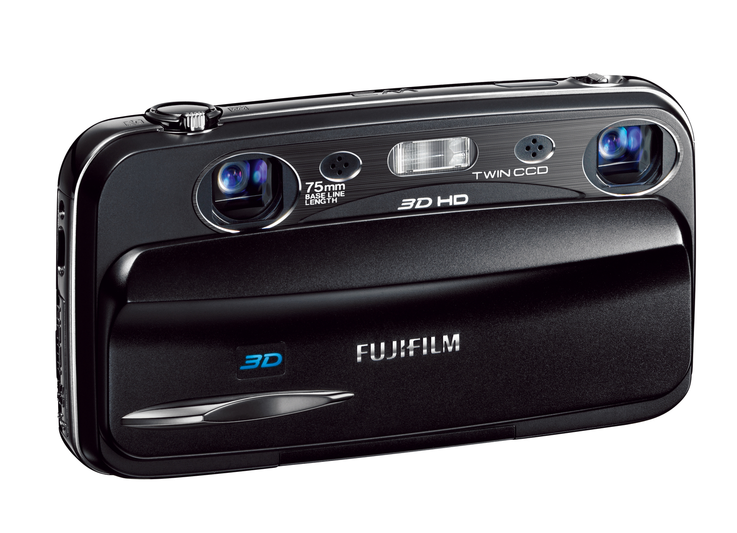 The innovative 3D digital camera can take HD 3D movies and still images. You can enjoy playing natural 3Ds without special glasses. The curved body is easy to grip even with one hand. The premium black alumite surface with hairline finish creates a high-grade metallic exterior. On the sliding barrier, the blue 3D logo illuminating at power-on gives a futuristic look.