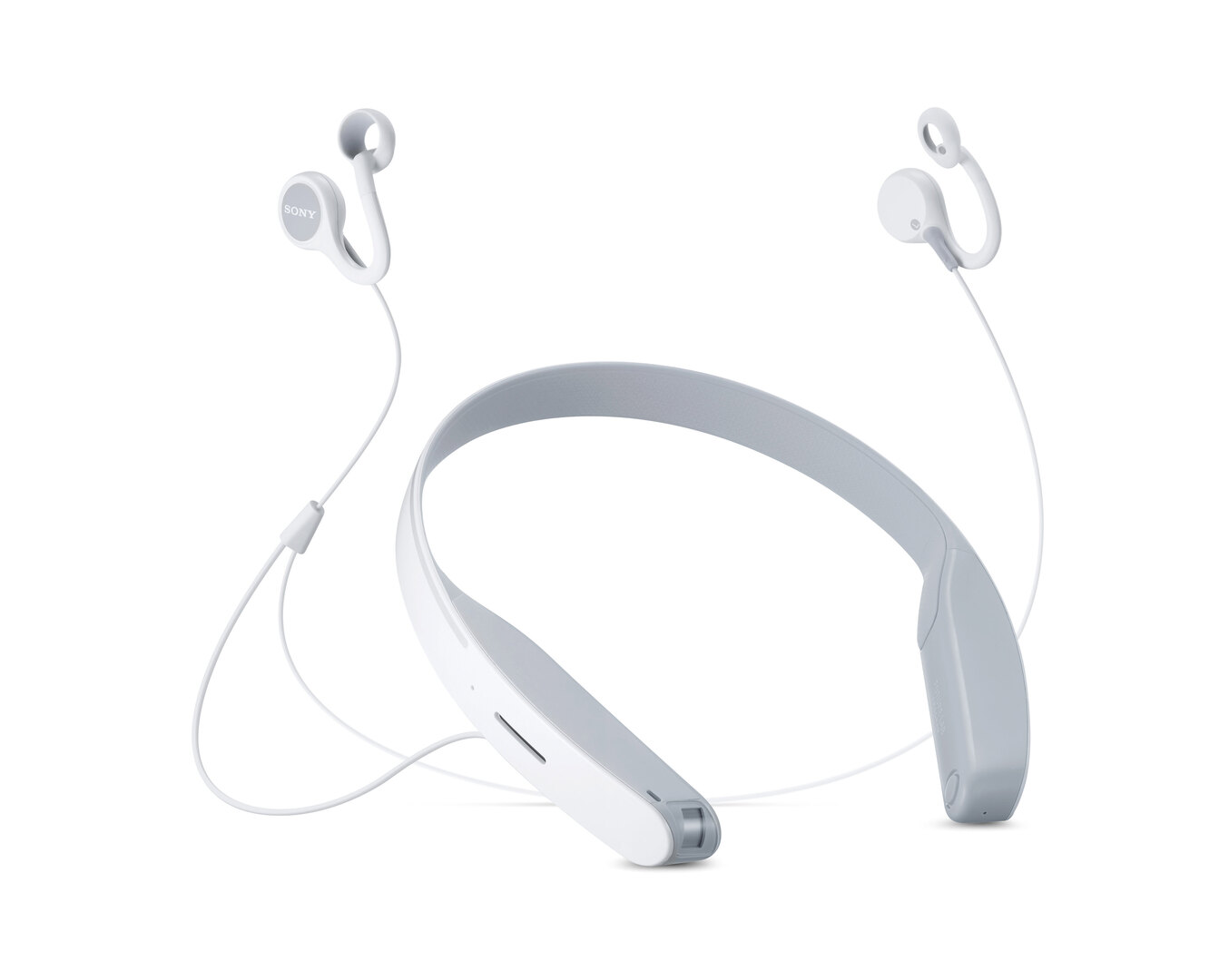 These headphones are based on the idea of rendering music and audio information perceptible without having to use one’s hands or cover one’s ears. The objective of the innovative design is to develop a durable device to be worn around the neck, with a fit that adjusts to different users. Headphones with open earplugs signify one variant, allowing exterior sounds in while listening to music.