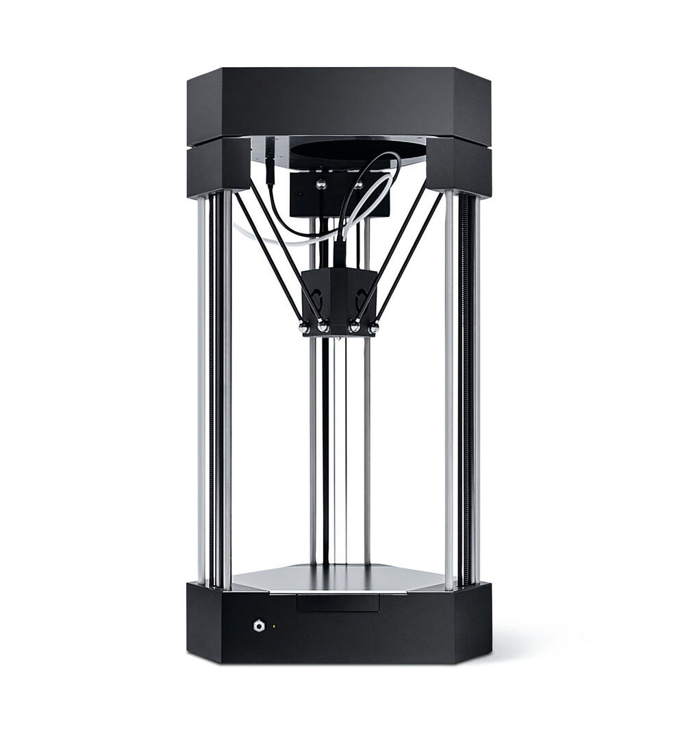 This 3D printer captivates with its modular expandability. The frame with its matt-black finish creates a sculptural silhouette.