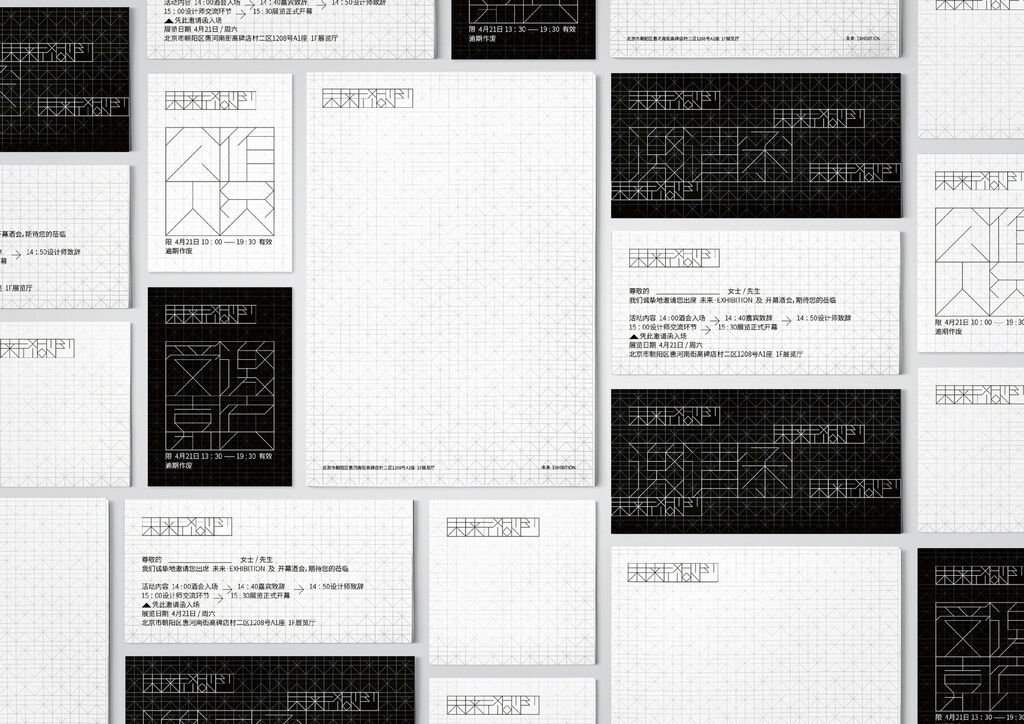 Future Exhibition is an art salon with an exhibition of the same name showcasing contemporary works by artists from different fields to explain the connection between works of art in relation to future art. The corporate design sets up a seemingly clear visual network for the exhibition and mixes it with illustrations of the Chinese characters for future. In this way, a logo and a series of key visuals were created, all of which form a closed unit in their lines, while the characters interrupt the neatly arranged image in a surprising manner to catch the viewer’s attention.