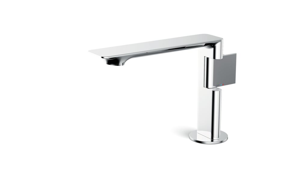 In order to change the traditional image of the faucet, the design of this basin faucet showcases an embedded method as well as an innovative thin technology. It thus offers sophisticated ease of use and, following current trends, features the new main body embedded in the design of the temperature control. The user can gently regulate the temperature, reminiscent of the flapping of light wings. With its slim and simple design, this basin faucet can easily be adapted to contemporary environments.