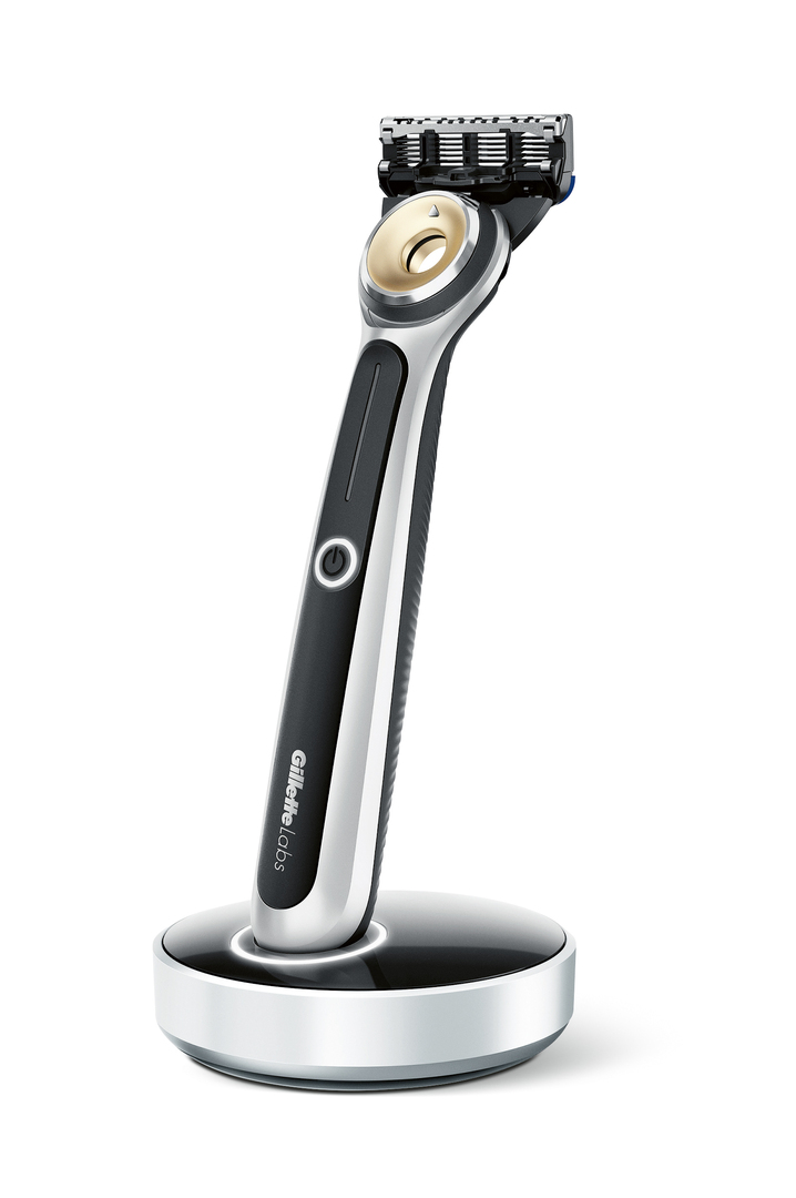 The Heated Razor is a wet razor with a stainless steel warming bar that heats up in less than one second. It glides over the skin, providing warmth and comfort during the shave. The function is inspired by the ritual of putting on a hot towel before shaving in order to prepare the skin. It is waterproof and made of premium grade materials, fostering an elegant appearance. For inductive charging, the razor stands vertically on a base with a strong magnetic holder.