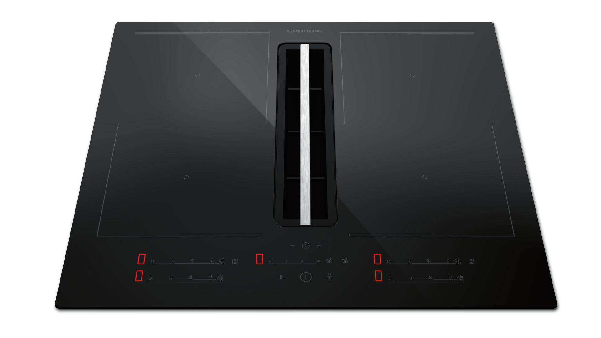 The Grundig gr9900 Hob Extractor is a space-saving product solution for the kitchen that draws attention with its particularly thin, flat appearance. This hob with hob extractor is suitable for different spaces thanks to two different sizes. The ventilation grille is at the same level as the hob, allowing pots to be moved effortlessly. A high level of functional quality is also achieved by uncomplicated cleaning of the air and grease filters. Reduced lines on the hob provide orientation, and coherently designed operating levels complete the user-friendly overall appearance.