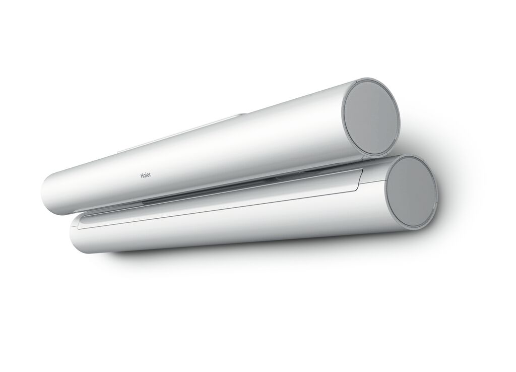 A striking two-column shape characterises this air conditioning unit, not only making it special from an aesthetic point of view but also ensuring a pleasant flow of air. This is based on unique nozzle technology in which cold air is blown out at the top and normal temperature air at the bottom. Both airstreams combine to create a pleasant and soft air supply. The lower cylinder also contains an air purification module. Thanks to the staggered arrangement of columns, the unit can be mounted on the wall more easily.