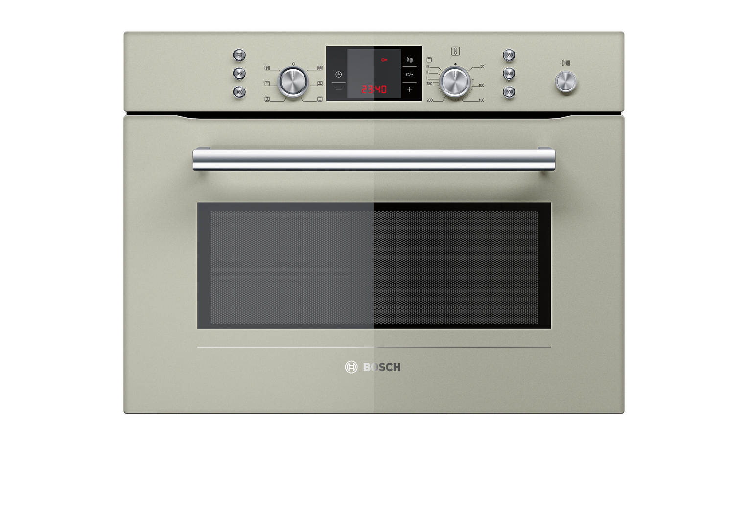 This compact oven combines conventional methods of heating with a microwave function, thus saving not only space but also time and energy costs. The “quartz” coloured glass front features a metallic effect and provides elegant lightness. Specifically well-placed metal accents at the rotary switches and the handle round off the appealing overall impression. In particular, its expressively refined glass surface fits elegantly into a contemporary open-plan kitchen ambience.