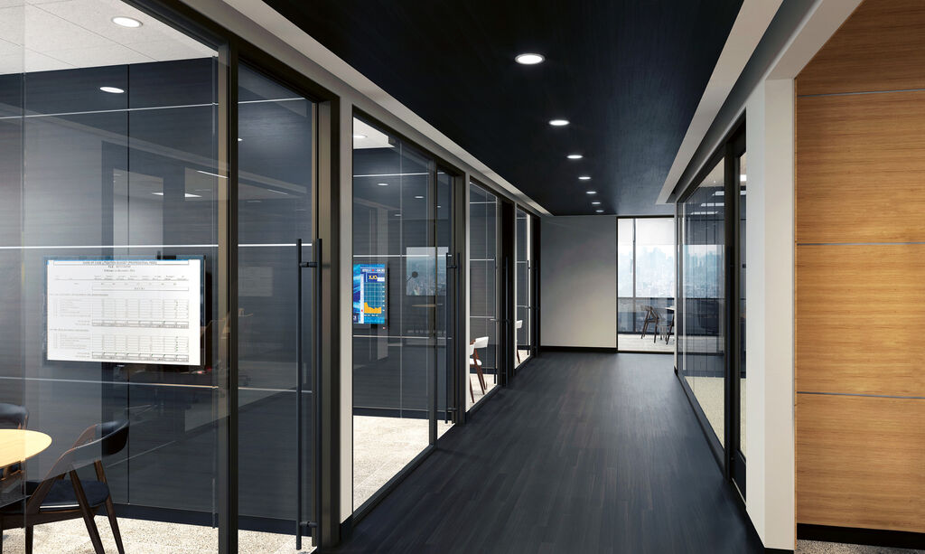 Holoform is a minimalist, demountable wall system and comprises custom aluminium profiles, tempered glass, doors and fittings. The fully reusable system is available in single- and double-glazed versions which come with either an anodised or a painted finish. Optional add-ons are hinged and sliding doors that are frameless, glass-framed or made of wood. The system’s frames also offer several other features such as a vertical-error tolerance to allow for adjustment in case of inconsistent building conditions.
