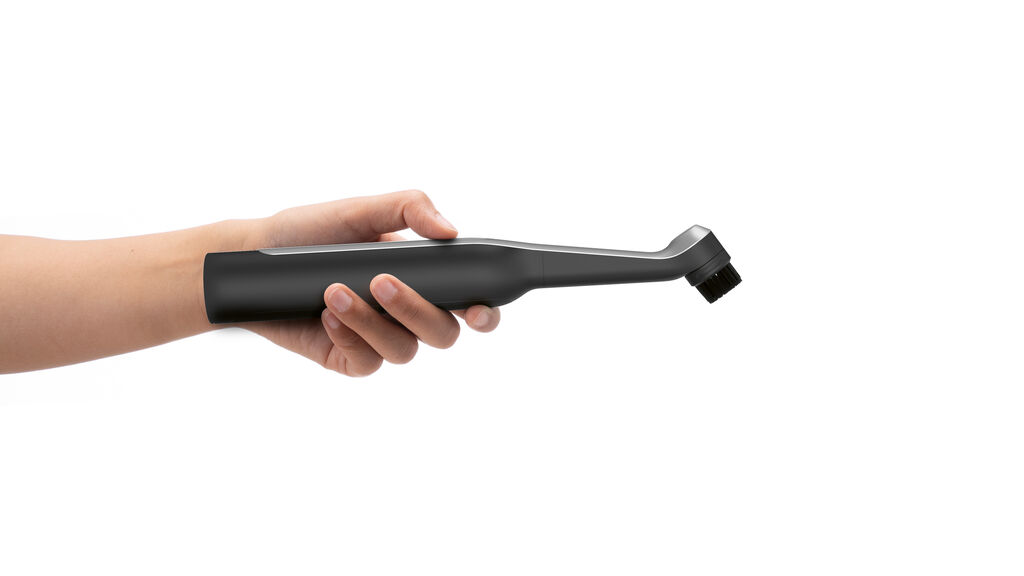 The compact HOTO Detail Power Scrubber combines versatility and user-friendliness when cleaning hard-to-access areas such as joints or sink edges. The seamless housing prevents dirt accumulation, while interchangeable attachments with hard and soft bristles enable use on different surfaces. A magnetic plug-in system allows quick, one-handed accessory changes. Non-slip grip surfaces, IPX7 water resistance and an integrated hook for hygienic storage round off the concept.
