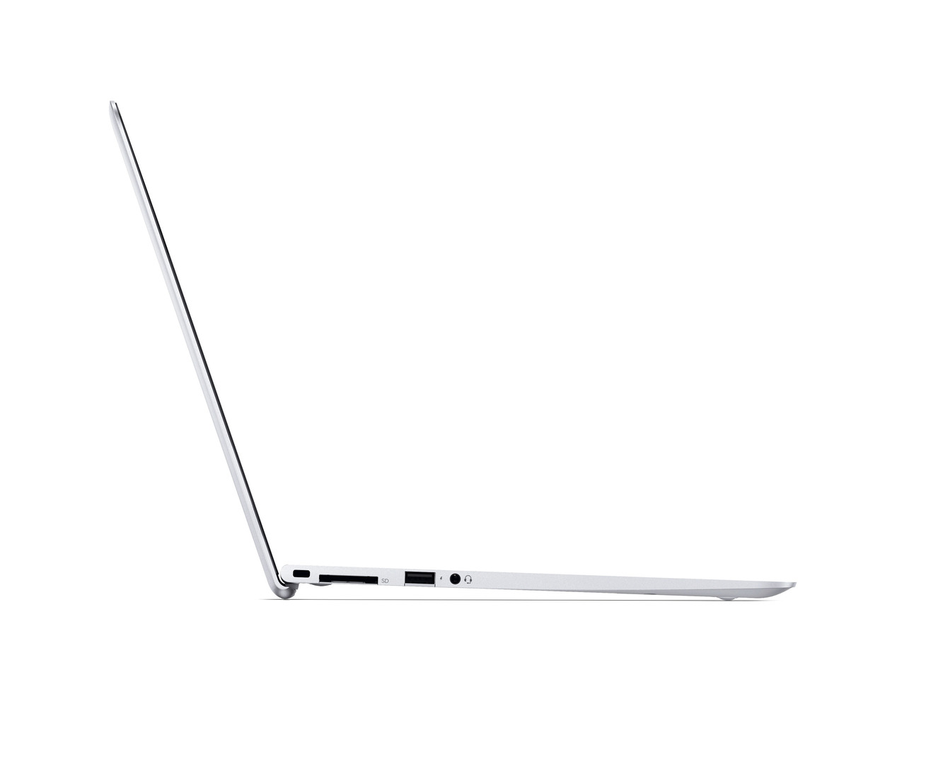 This very slim notebook combines excellent performance characteristics with a classy design. The hinge is both shapely and functional.