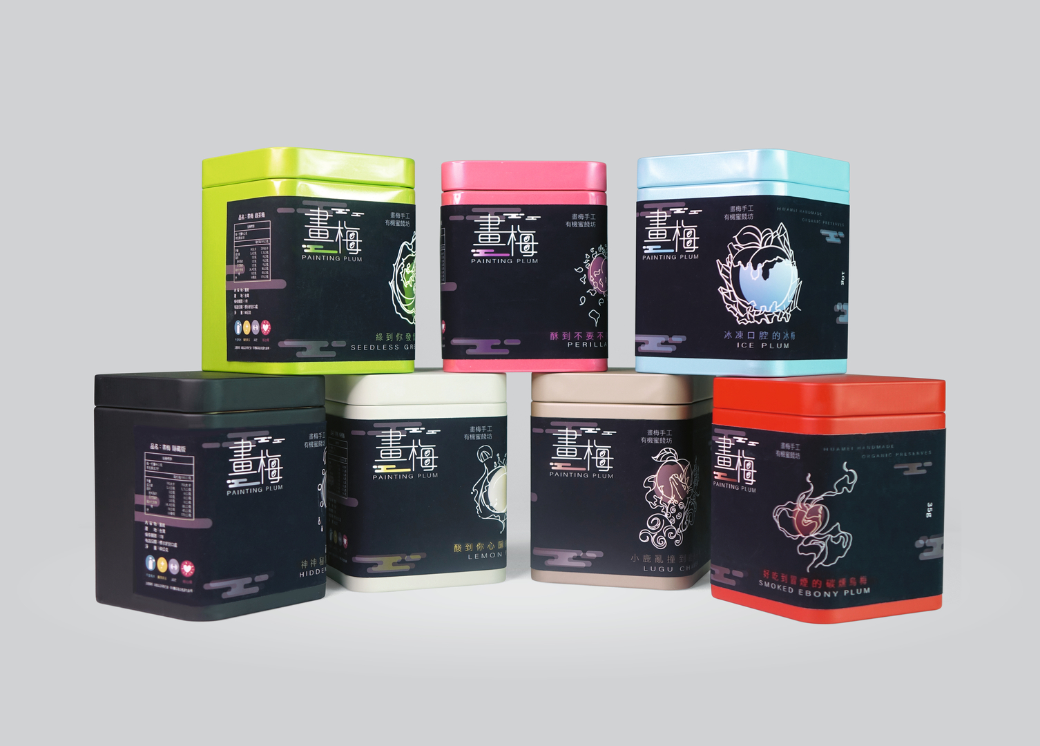 The packaging design is intended to revitalise the consumption of candied plums, enhanced with various flavours, which are for example offered at traditional markets. The tins designed for this purpose guarantee clean goods and are also suitable as gifts. For easy identification of the respective flavour, each flavour is assigned its own colour. Additionally, the labels, which radiate freshness, show an illustration which refers to the ingredients used. The tins are designed in a small size to encourage consumers to try different varieties.