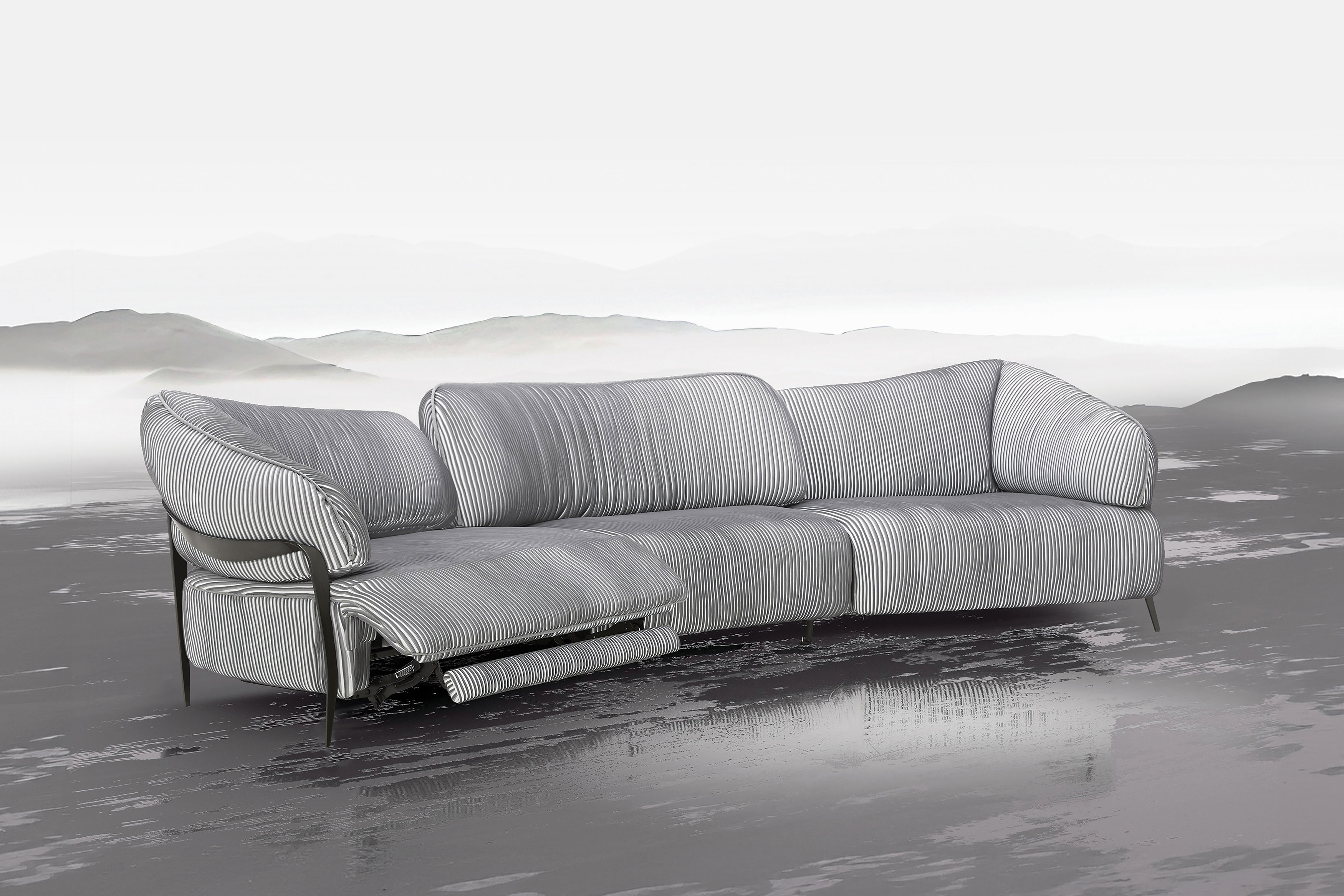 HUAI SHAN presents modern designs that convey the sentiments of ‘observing, seeking, meditating, and mountain-dwelling’ with minimalistic elegance. The sofa features a mountain-like silhouette with three curved backrests for an embracing experience. Metal armrests inspired by Huai Shan’s gentle, rolling mountains are uniquely connected along the entire backrests. They come in black and white, reflecting landscapes in Chinese ink paintings.