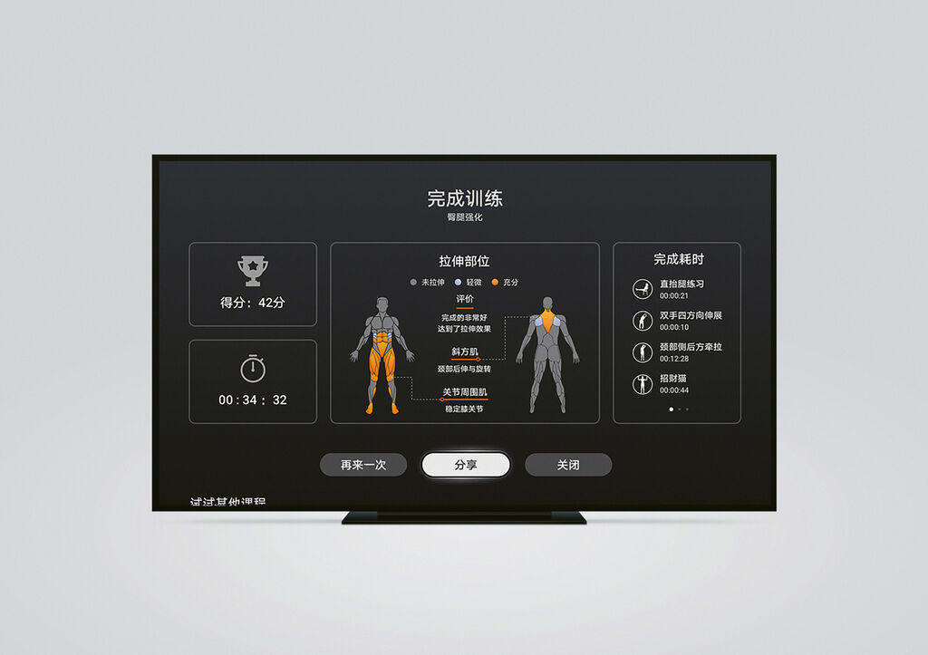 Huawei AI Fitness is a health solution that combines cameras with large screens to address growing health needs. The user experience design integrates elements such as bone node recognition technology for precise verification of standing or lying down positions, slow speed, different clothing, the lighting environment of a variety of scenes, and real-time contrast between the user’s and the coach’s actions. When the user’s actions are not up to standard, an intelligent voice coach conveys the feeling of “private” instructions, prompting them to improve on the movement.