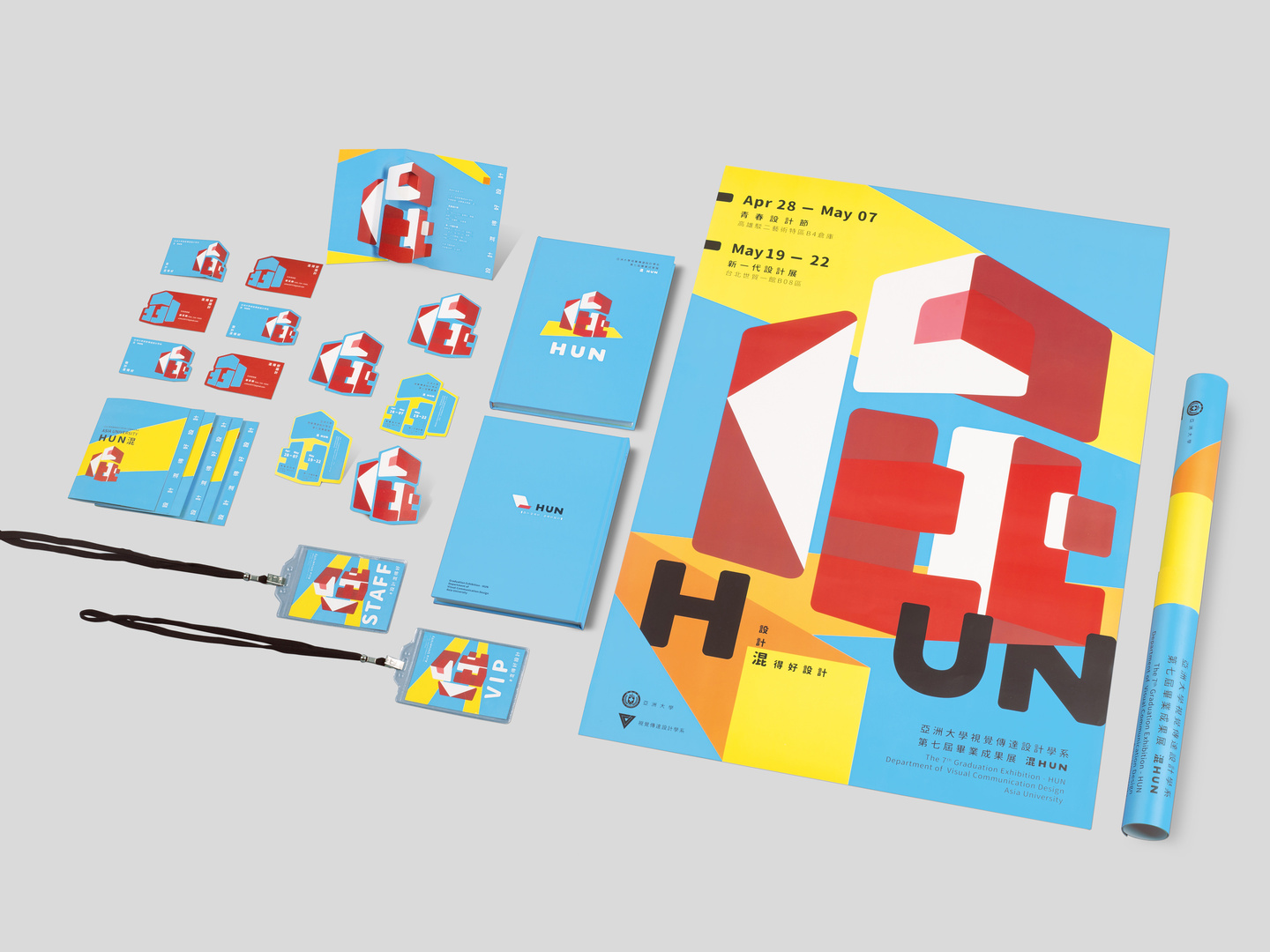 The Chinese word “Hùn” has many meanings, from “slacking off” to “Mafia” and “the gangster world”. With this ambiguous title, graduates of the Asia University focus, with tongue in cheek, on their design training and reflect on general absorbing and converting processes in art and design. In a concise way, posters, book covers, badges, business cards, and flyers profit from the signal effect consisting of vigorous colours, typographic elements and spatial complexity in the layout.