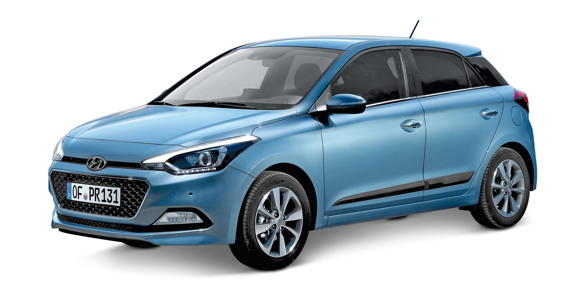 The new i20 has a clear and elegant design. A long bonnet, more vertically aligned A-pillars and a distinctive character line along the side of the vehicle characterise its autonomous appearance. The car’s bold impression is emphasised at the front by the hexagonal grille and the LED headlamps. At the rear, black glossy C-pillars give the impression of a floating roofline.