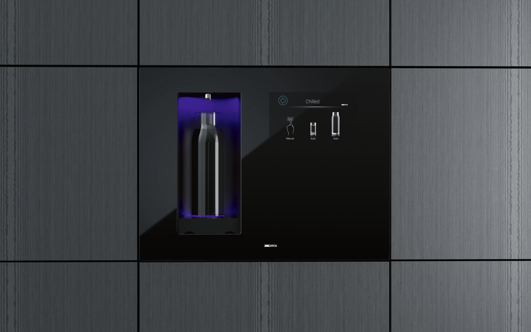The I-Wall is an IoT-enabled built-in device that provides filtered, chilled and sparkling water. It uses smart technology for a customisable user experience, integrates an intuitive touchscreen and offers a high level of connectivity. The customisable display can be used to set the desired quantity and temperature. It also shows unit data like filter status and filling quantity of the CO₂ tank in real time and allows the user to select times when the unit should run in energy-saving mode.