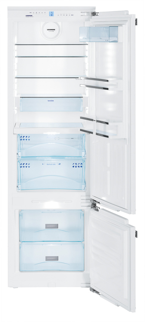 With innovative ideas, elegant design and quality, this integrable BioFresh fridge-freezer combination meets the highest requirements. In the development process, particular importance was attached to combining the energy efficiency level A+++ and ease of use. Characteristic are the storage shelves made of safety glass with stainless steel profile, the elegant GlassLine door interior with plastic storage elements as well as the harmoniously integrated stainless steel profiles.