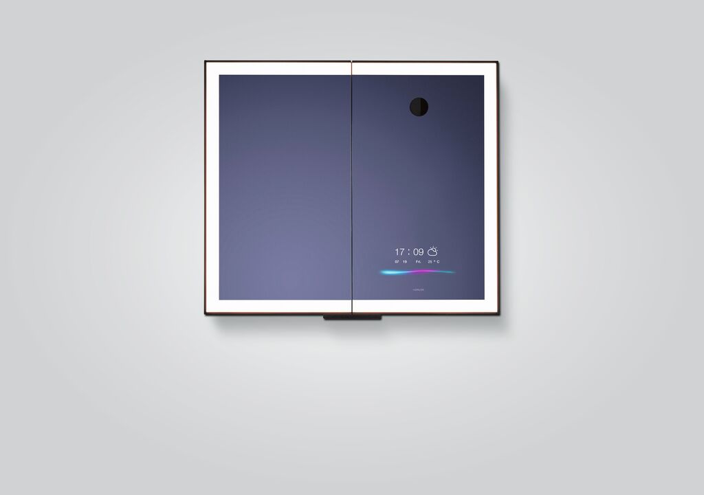 Instance innovatively supplements the original purpose of a bathroom mirror. Its square mirrored surface simultaneously acts as a touch display screen. A camera built into the edge of the mirror transfers a life-size undistorted image of the user onto the screen and ensures good lighting for facial care and make-up routines. Instance can also display health information including weight and body mass index (BMI), as well as make-up tutorials if desired. All functions can also be easily operated via voice control.