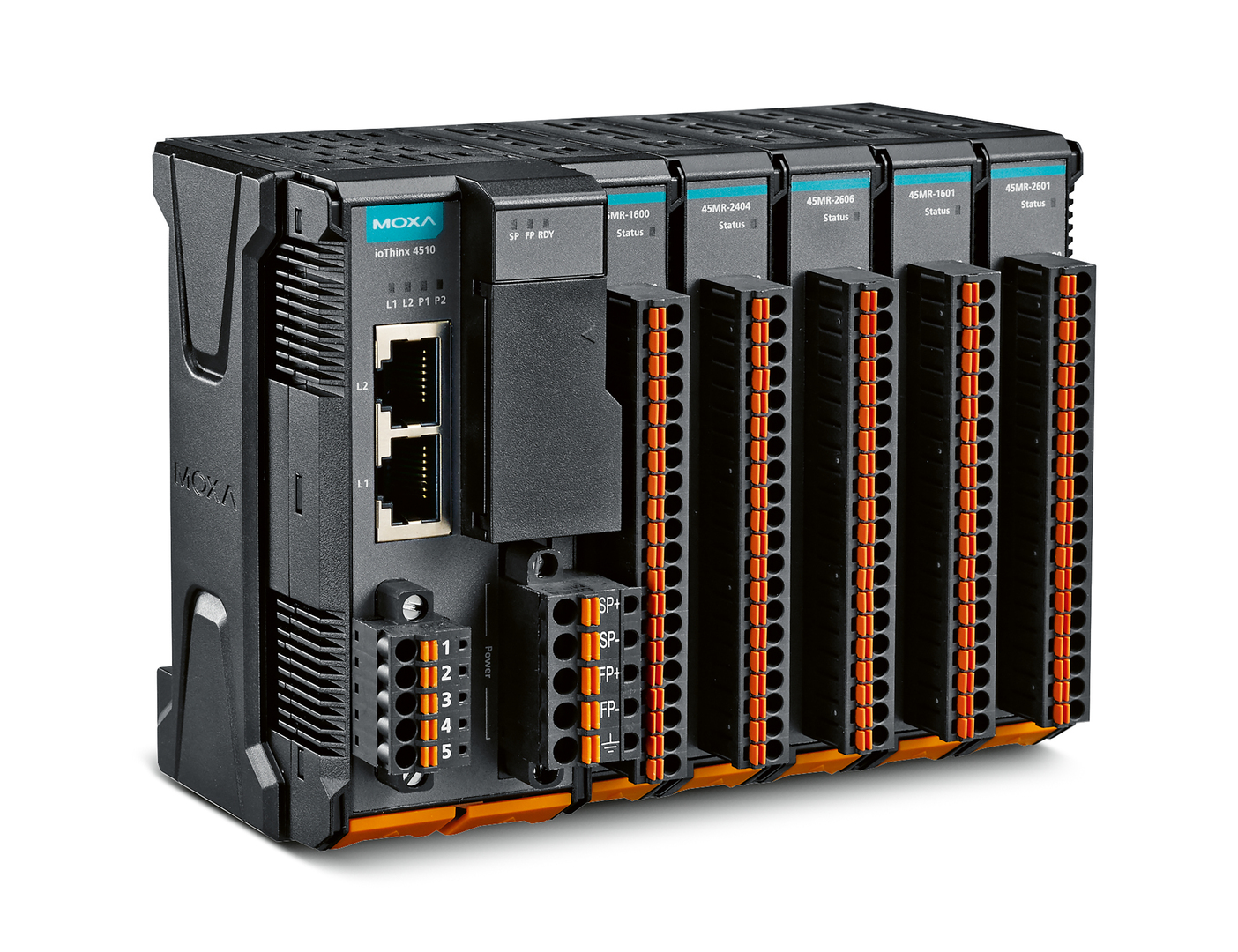 The special feature of the ioThinx 4500 Series is the mechanical construction, which considerably reduces the amount of time required to install and remove the control units. Neither screwdrivers nor other tools are required when installing the hardware – when wiring the interfaces and signal ports or mounting the device on a DIN rail. In addition, the individual modules can be easily latched and released from the rail support using the tab on the locking mechanism.