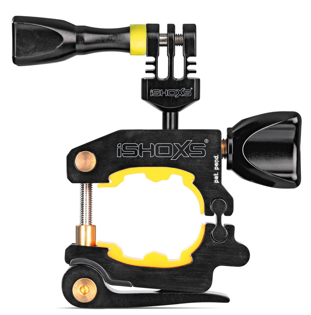 The iSHOXS ProMount is designed to attach action cameras to pipes, for instance bicycle frames. With the easily adjustable diameter range from 20–42 mm and compatibility with round, oval and angular profiles, a wide range of applications is possible. The mount is machined from aluminium and features a high-quality anodised surface. It offers multiple adjustment options, a quick-release fastener and is simple to handle.