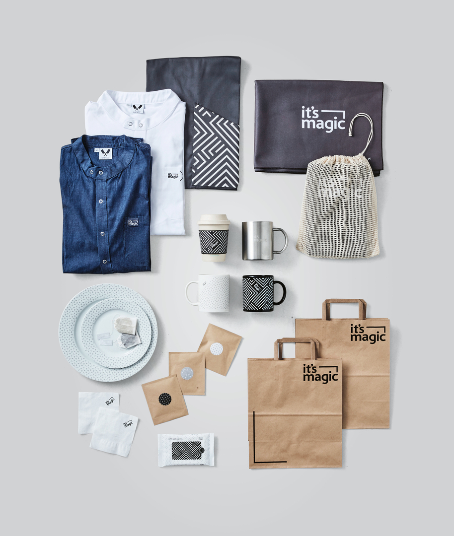 “it’s magic” is the name of the brand shop of SK magic, a manufacturer of kitchen and environmental appliances. Its logo was created by combining the wordmark with a square pattern in reference to a building. The edge line in the logo is picked up as a key visual to symbolise the brand value of customer loyalty. The visual language is simple and effective, being based on the concept of repeating or extending a minimal number of modules. Several key visuals can be used together in different proportions, following predefined rules. Thus, the monochrome brand design is easily applicable to different advertising media such as posters, leaflets, packaging or brochures.