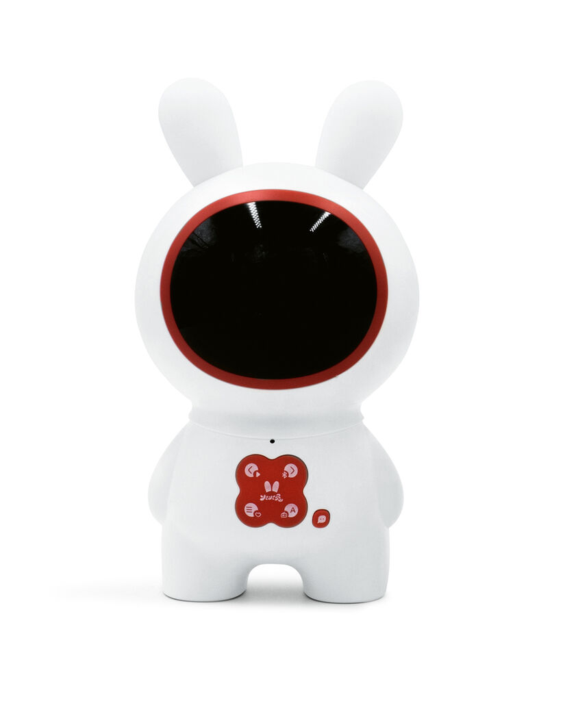 The educational robot J7 supports the playful learning of a foreign language by means of artificial intelligence. Interaction through language and visual feedback through the eyes of the robotic bunny make it especially child-friendly.