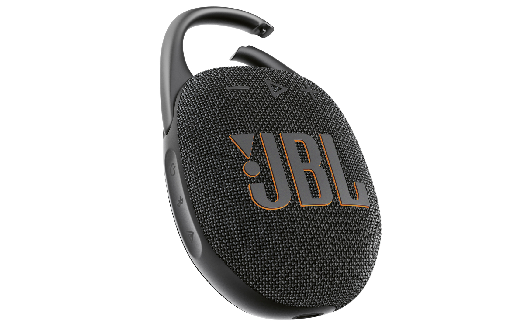 The JBL Clip 5 is an ultra-compact Bluetooth speaker for on-the-go. The newly designed carabiner is integrated into the device. Thanks to its wide opening, it can be attached to numerous objects, such as bags, belts or shower armatures. The speaker delivers voluminous sound with powerful bass. The revised user interface allows for easy pairing and connecting multiple speakers. The JBL Clip 5 is made of recycled plastic and fabric.