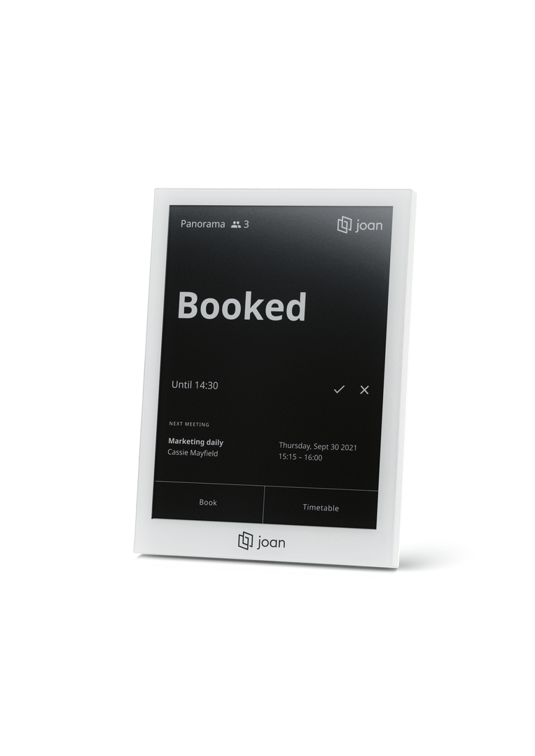 The durable Joan 6 Pro meeting room scheduler is made of recyclable materials such as aluminium and glass, thus taking into account not only the desire for high quality but also the principle of sustainability.