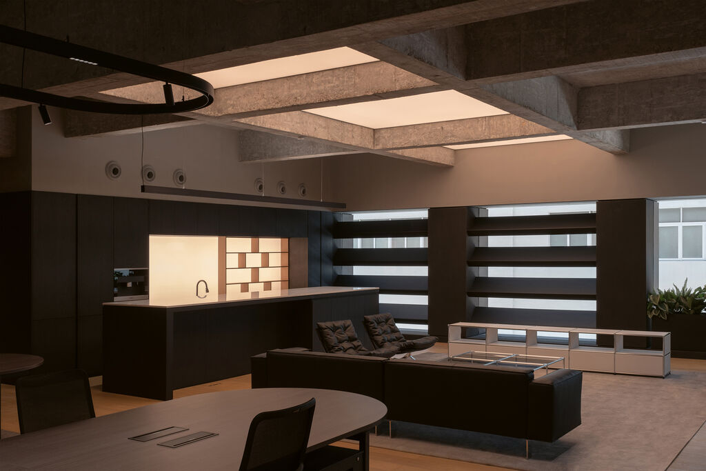 The KClighting Office, which is the headquarters of this LED lighting specialist, is a four-storey factory building that was converted into a sophisticated office space with lobby, showroom, laboratory, workshop and rooftop garden. The development team’s goal to design a creative work environment is realised through the open-plan layout, sculptural room dividers and an emphasis on light. The main idea was to optimise the user experience of the workspace by leveraging the critical role that lighting plays.