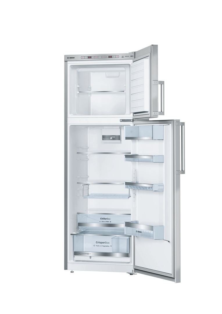 This innovative fridge-freezer product series sets new standards in terms of form language and technical equipment. The stringent exterior design is characterised by the consistent use of authentic materials. The high energy efficiency level A+++ ensures low power consumption. The upper part features two large freezer areas, while there is a clearly structured cooling compartment behind the lower door. Inside, high-gloss brushed metal applications in combination with a high-gloss transparent plastic give the shelves more depth and value. The innovative LED light allows the interior to shine in neutral white light. Thanks to its modern touch technology, the control panel is easy to clean; it is used in order to regulate the temperature in the refrigerator and freezer compartments individually.