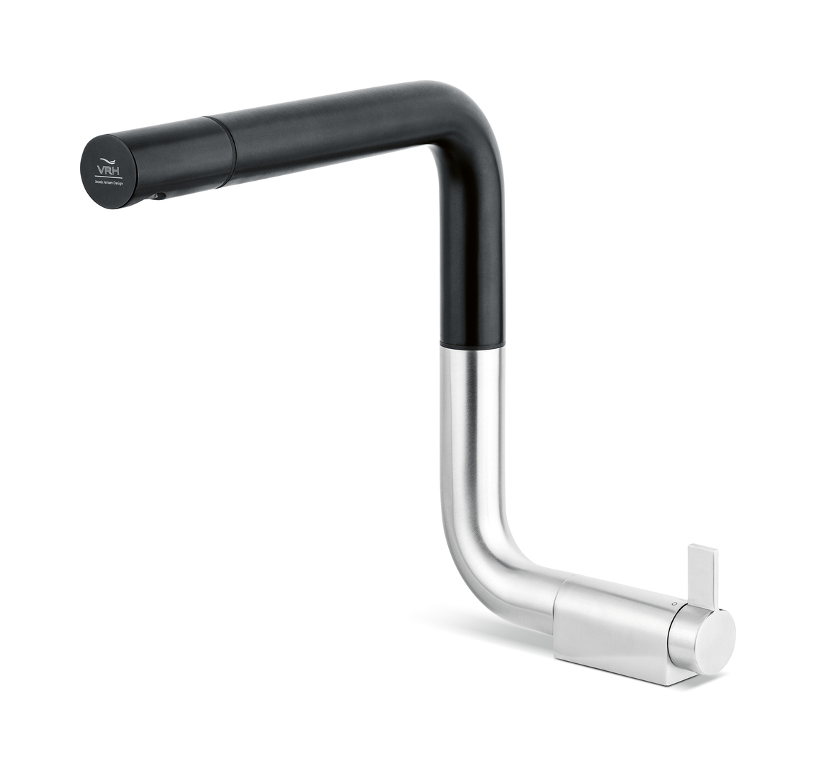The kitchen tap KÜCHE – created by VRH in cooperation with Danish studio Jacob Jensen Design – represents a successful fusion of design and innovation. Made of durable 304 stainless steel, the kitchen tap combines two spouts, one for regular and one for filtered water. The carefully placed rotation points ensure an intuitive operation. The defining design features are the minimalist lines, which provide a modern overall appearance.