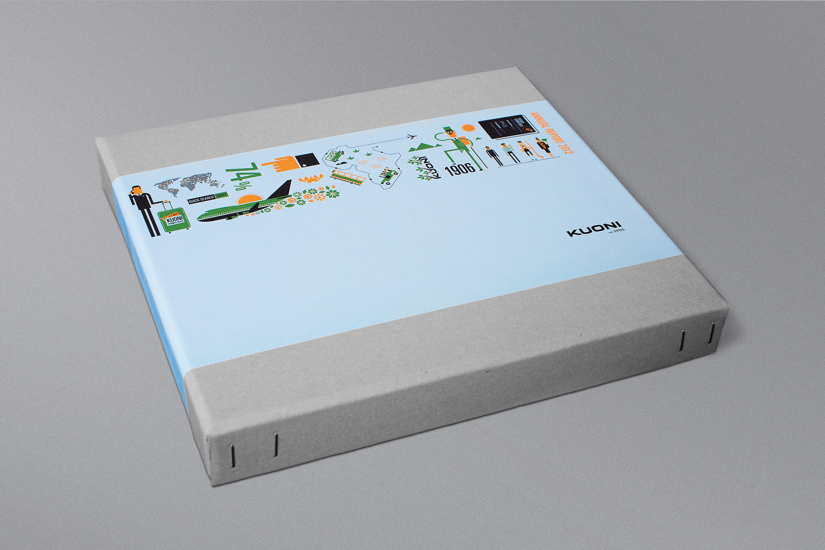 Kuoni’s 2012 annual report is designed as a workbook, presenting quickly accessible, comprehensive information, both in print and the connected online version. It contains a market report, financial report and in between the two a section of interviews with a small group of the company’s top suppliers about the passion for travel that Kuoni stands for. The spiral binding allows the book to lay flat and stay open on any page and the register helps to easily find the most important chapters. Fold-outs present larger graphics on a single page.