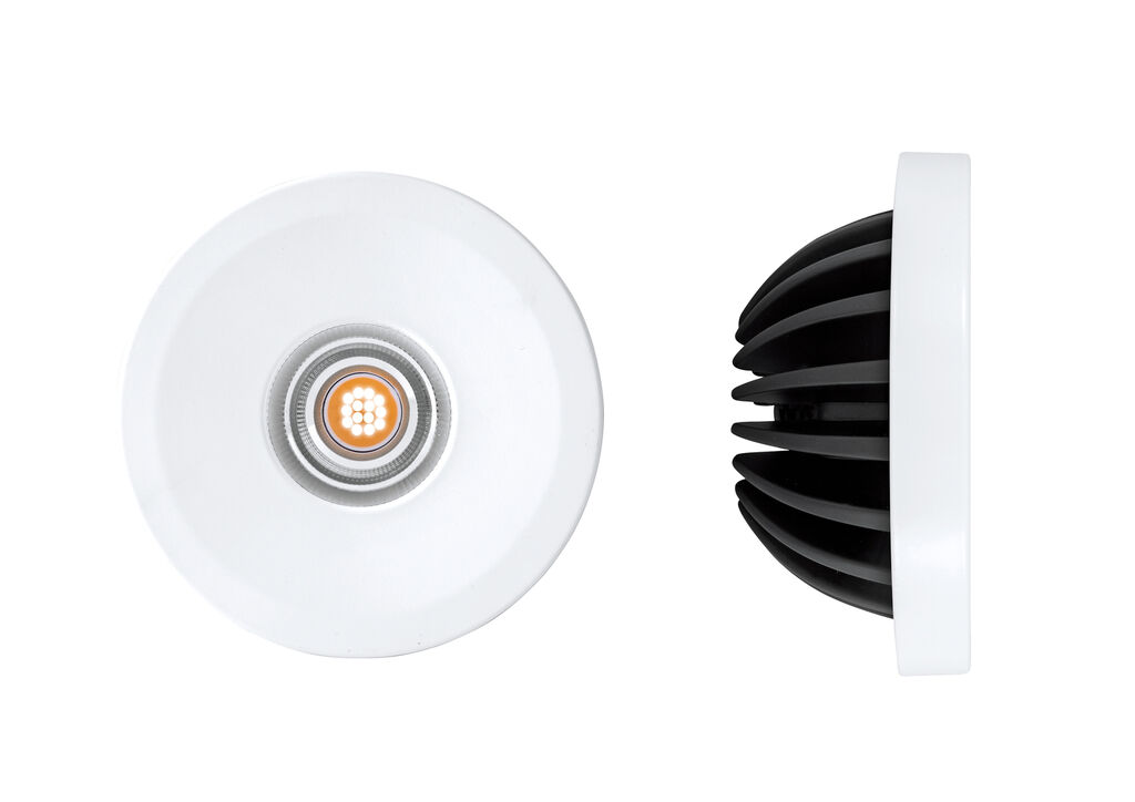 Lark111 is a high-quality retrofit LED solution for luminaires previously fitted with QR-111 halogen lamps. Thus spotlights, recessed lamps or cardan lamps can be converted to LEDs. By using a smaller reflector, the installation height has been reduced to 49 mm. The reflector has a high efficiency of 92 per cent and provides the usual diffusion angles from floodlight to spotlight. Lark111 is available in three different versions.