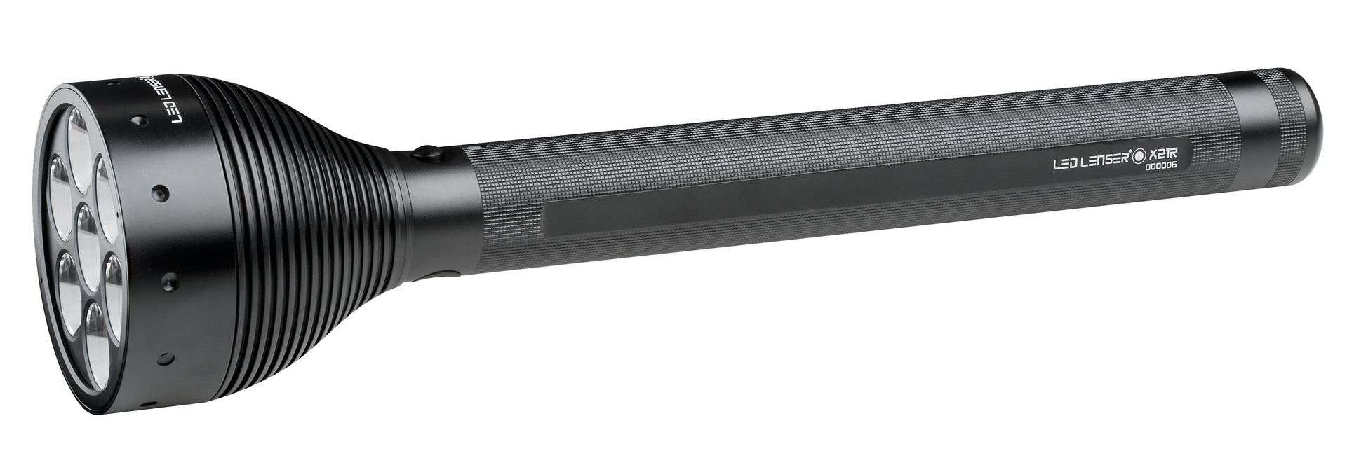 The surprising fact about the LED LENSER X21R torch is its recharging concept and its intelligent lighting control. It has a light output of up to 1,500 lumens which can be controlled individually using Smart Light Technology. This puts a total of eight light functions and three light programmes at the user’s disposal. Seven ultra-bright LED chips can be focused with the help of seven individual lenses and produce a homogeneous, sharply defined circle of light. Particularly in focus mode, the LED LENSER X21R provides a dazzling beam. Thanks to its recharging technology, the torch is nonetheless eco-friendly and cost-efficient.