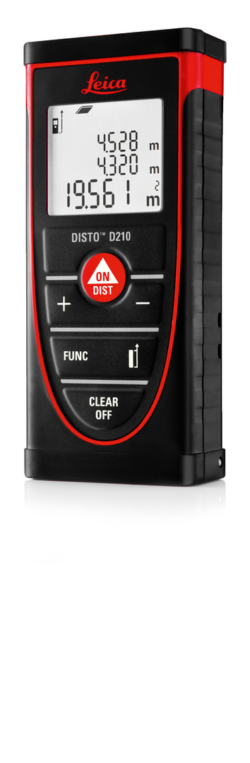 The Leica Disto D210 laser distance meter is a handy entrance-level model for the professional field. It offers the user many reliable, optimised functions for obtaining fast and exact measurements. A compact design combined with the tool’s precise performance demonstrates portable dependability. The structured body and emphasis on functionally important keys enable simple, virtually self-explanatory operation.