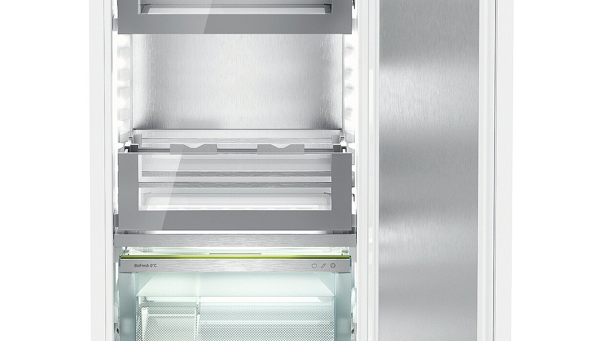 The design of the Liebherr fully integrated refrigerators ensures perfect presentation and preservation of the foodstuff to be stored. Every element is well thought-out in its functionality and supports the high level of convenience. The innovative LightTower lighting concept is particularly impressive, delivering intelligent and subtle lighting. For users, every time they open the refrigerator, it is a pleasant experience.