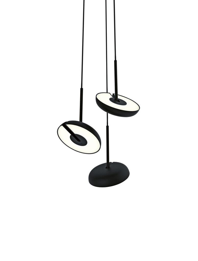 Lily is an organic pendant lamp featuring a friction hinge mounted at the centre, which allows it to be oriented horizontally and vertically, for adjusting direct or indirect light distribution as required. An effective light generator consisting of 48 LEDs and an internal reflector evenly illuminate the soft diffusing acrylic lens. The die-cast aluminium lampshade ensures heat dissipation. Lily is available in five colours and is equipped with either phase or 0–10V dimming as standard.