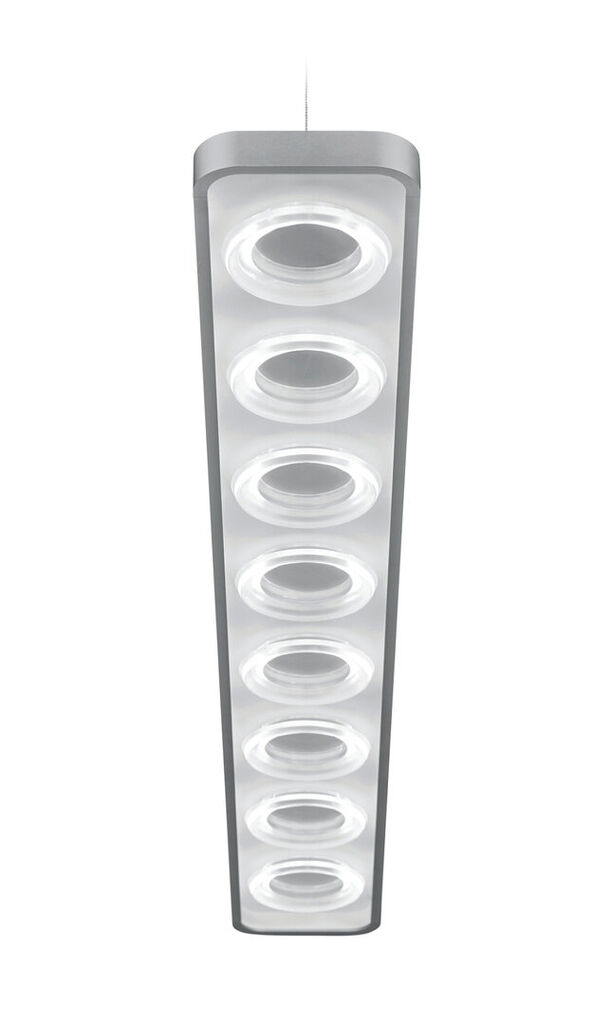 Loop is a series of linear suspended and recessed luminaires showcasing a purist aesthetic. Its unique aperture design merges geometric shapes with advanced LED technology, making the lights suitable for different environments. Equipped with the novel Radial Anidolic technology, they deliver highly efficacious, axially symmetric lighting distributions. The small transparent optical lens allows a high level of visual comfort from all viewing angles as well as a uniform illumination of work surfaces. The product concept is complemented by high energy-efficiency.