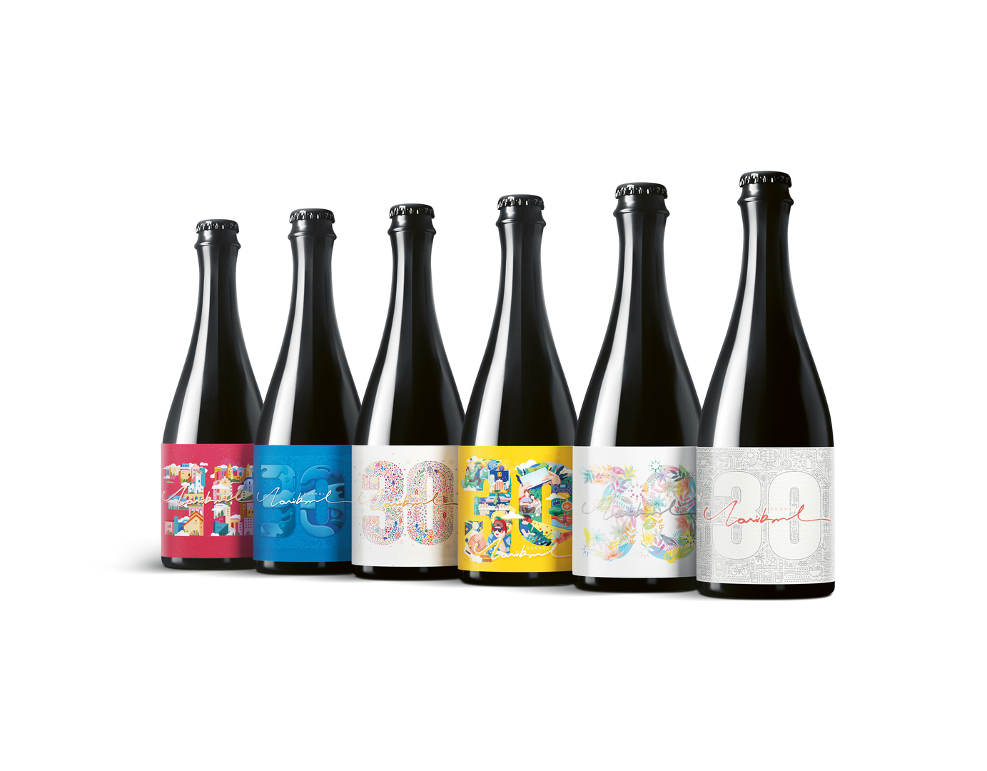 The name of the dark beer “Lovibond 30” refers to the British brewer Joseph Williams Lovibond. He is the inventor of the colorimeter, used to determine the quality of a beer. The number 30 denotes the colour value of the product. The design of the packaging is geared primarily towards younger consumers. The neck of the bottle is composed of 16 curved surfaces and tapers upwards, true to the slogan “Take your time”. One box contains 12 bottles, each designed with different labels. They all feature the number “30” in order to draw attention to the brand name.