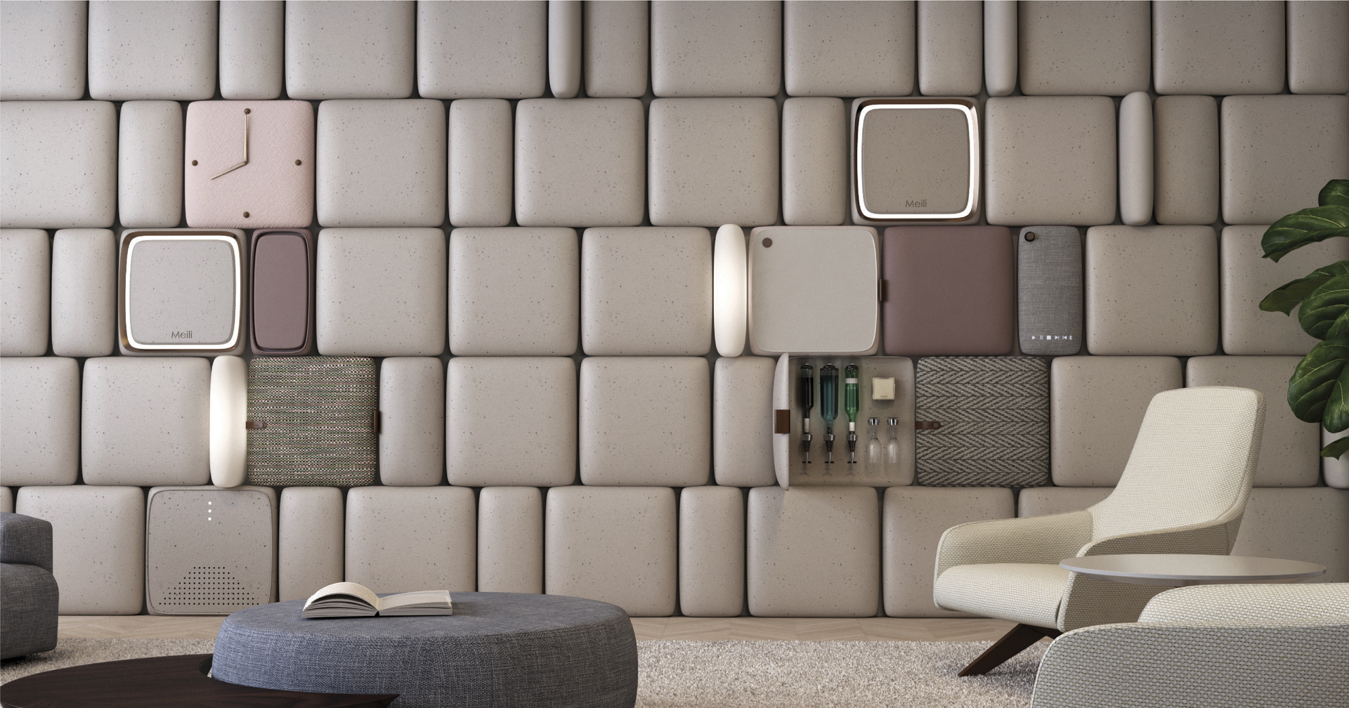 M-WALL combines technology, beauty and user experience. Unlike traditional wall panels, each panel can be customised to serve a unique function, such as a smart speaker, a body weight scale, a humidifier or a wine cabinet. Equal parts function and aesthetics, these beautifully made wall panels not only liven up a space, but also improve everyday living. M-WALL aims to change how the way of life looks in the future.