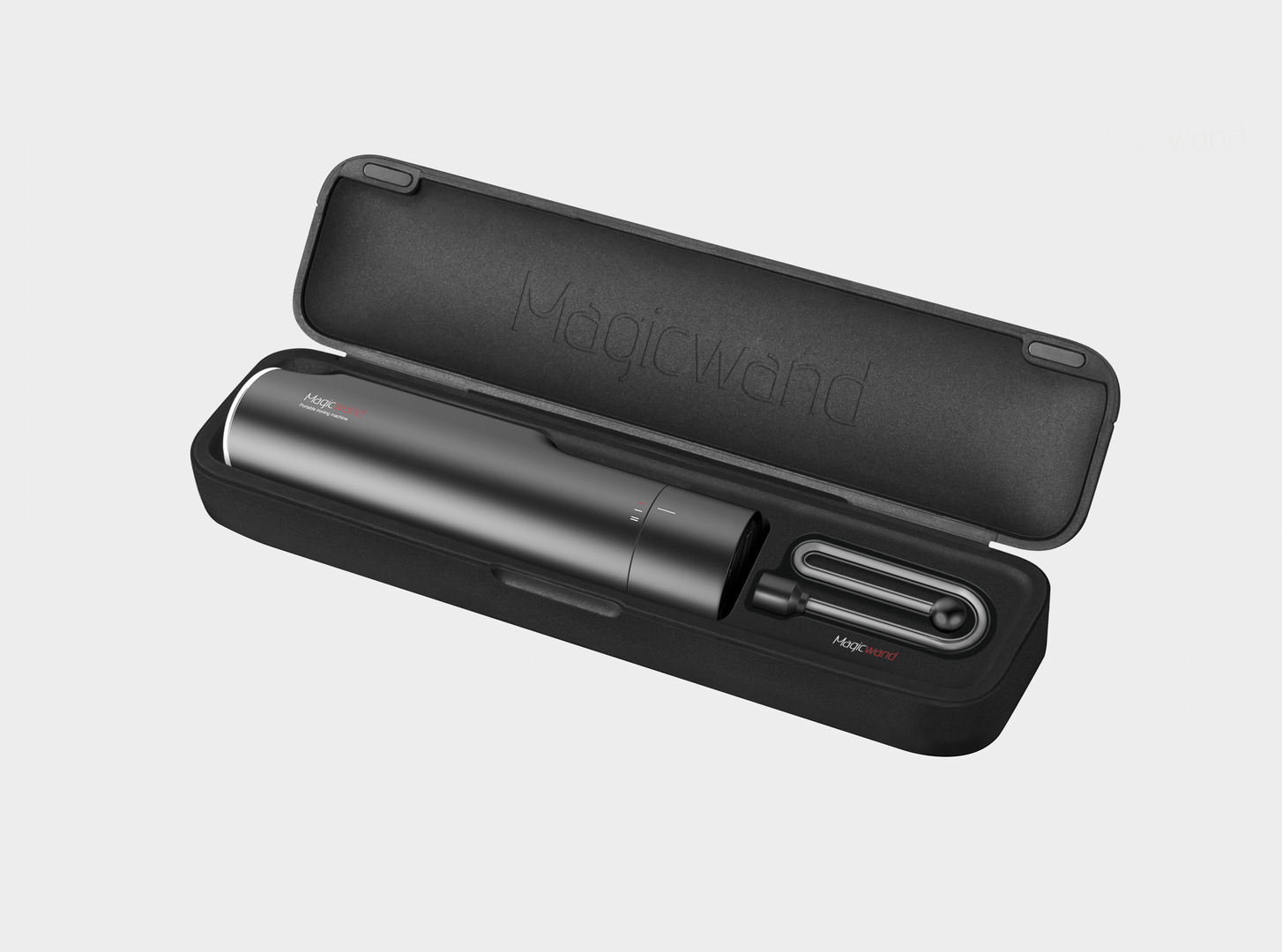 For frequent business travellers, wrinkled clothes become a problem when ironing services or equipment are not available. To tackle this problem, we designed the Magic Wand portable steam iron device. Our biggest challenge is in tackling a steam iron's need for a water tank. As such, Magic Wand is designed to use common plastic bottles as a water tank. This greatly reduces the size of the iron while also promoting upcycling. Once connected to a filled plastic bottle, the iron retrieves water through a gravity ball mechanism that allows water to be absorbed whichever way the iron is tilted. This allows full, multi-directional motion in the ironing process. All the functions of a steam iron are packed into a very compact structure that employs mature technology. With one full charge, Magic Wand is enough to power one person's worth of ironing load. Red Dot Award: Design Concept | Concept | Travel