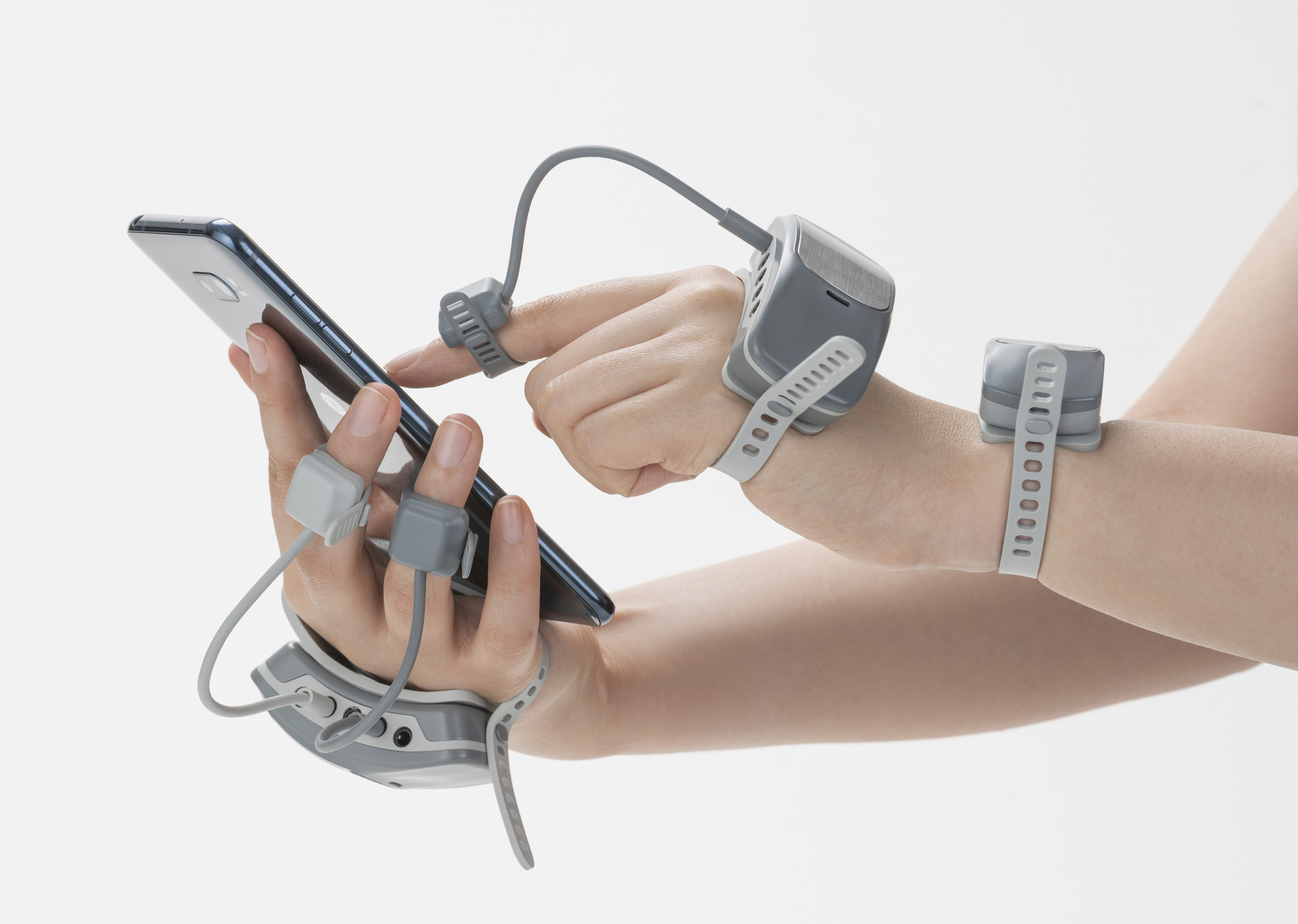 Manovivo is a wearable smart glove designed to monitor and train the impaired hand in daily life. This, in particular, is relevant to people with rheumatoid arthritis(RA). Manovivo has three parts—finger rings, the main device, and a wrist device—together, they capture the patient’s hand movement with precision before transferring the data via Bluetooth. The ring made with a flexible rubber is specially designed to fit any finger and cushion contact with the fingers, enabling customised measurements according to the symptoms of a patient.