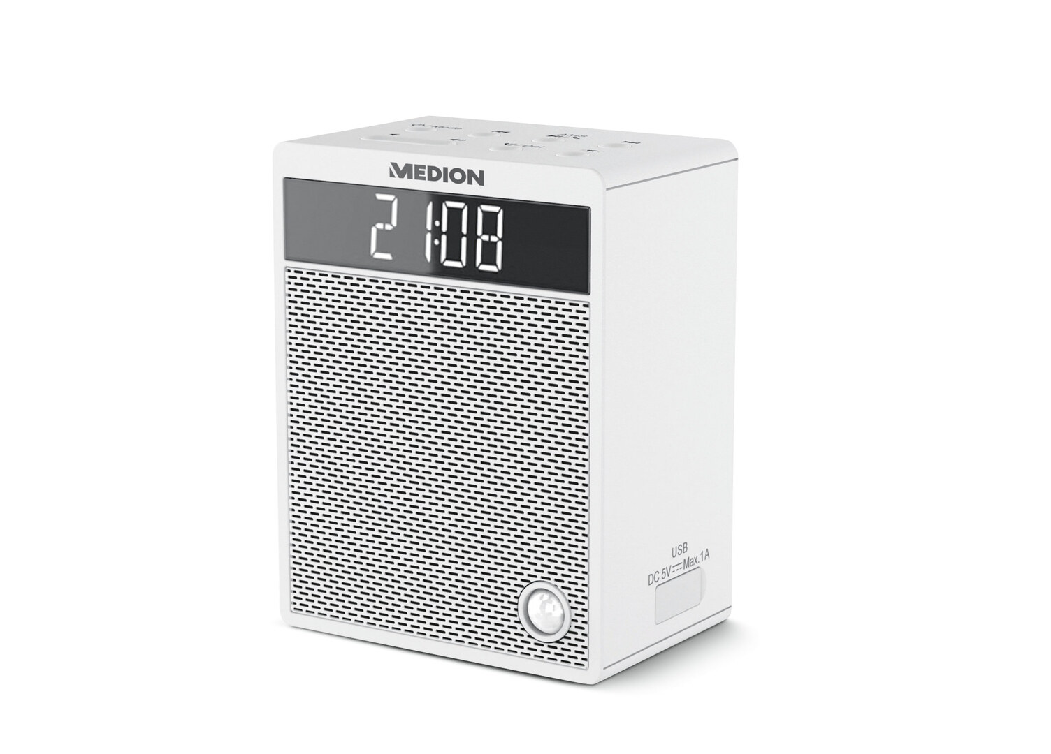 The Medion Life P65702 is simply plugged into the wall socket and thus immediately ready for use. Alternatively, it can be used on the go, thanks to its integrated 650 mAh rechargeable battery. Minimalist in design, the FM radio offers 32 radio station presets and is also equipped with Bluetooth so that users can stream their favourite music from their smartphone or home network. Additional equipment features are an orientation light with motion sensor, NFC and hands-free speakerphone function.
