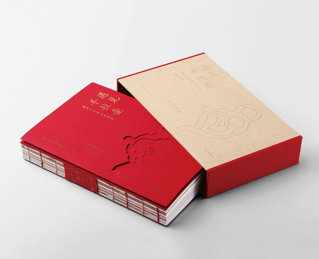 Chaoshan is a region in China where people are especially proud of their tea culture. In order to highlight the significance of tea as a daily basic food product, the book has 365 pages. The individual chapters are bound in several volumes in the form of bare ridges. The double-walled cover is especially distinctive on account of its signal colour red and the punched holes of different sizes and in the shape of three teapots. When closed, the cover creates the illusion of a 3D effect. The slipcase accompanying the book is extremely stable and can be used as a tray for tea.