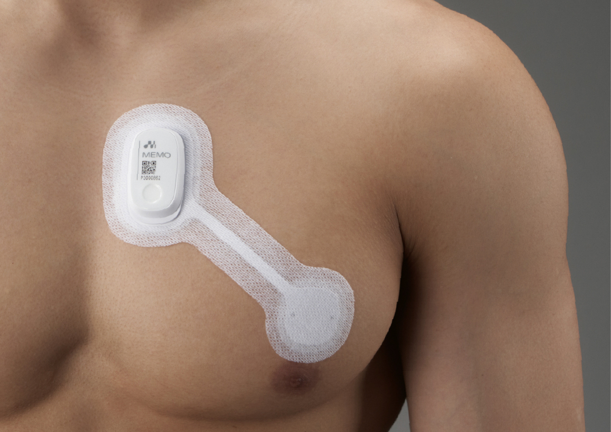 The MEMO Patch is an extremely compact ambulatory ECG monitor. Its low power consumption allows it to measure, store and transmit ECG signals for up to 14 days. The seamlessly sleek design and light weight ensure a high level of wearing comfort. Various electrode options allow for optimal customisation. Equipped with cutting-edge AI and gyro sensors, the device supports comprehensive patient monitoring and simplifies handling for both medical staff and patients.