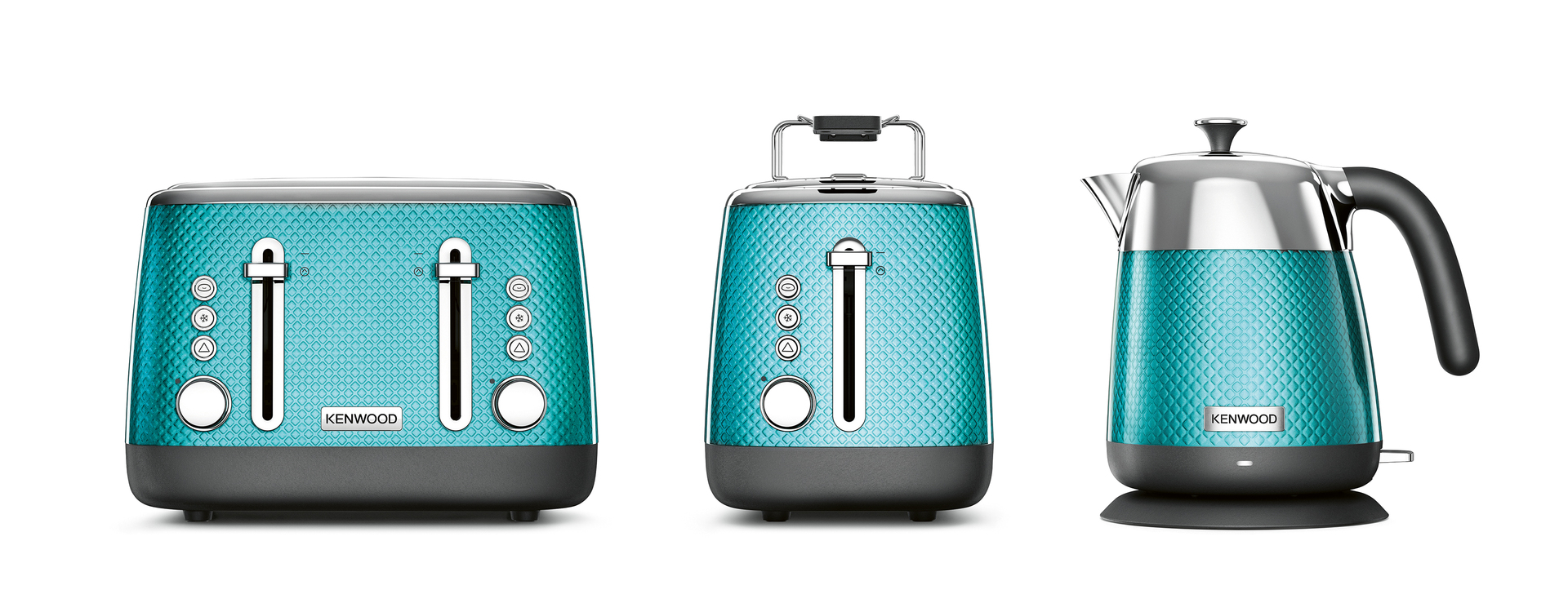 The Mesmerine collection combines an appealing appearance with high functionality. The housings of toasters and water kettles are decorated with a diamond pattern which is reminiscent of jewellery and yet is smooth, so that they are easily cleaned. Brightly polished metal elements add to the elegant impression and make the devices robust at the same time. The series is available in various fresh colours and can blend harmoniously in every kitchen.