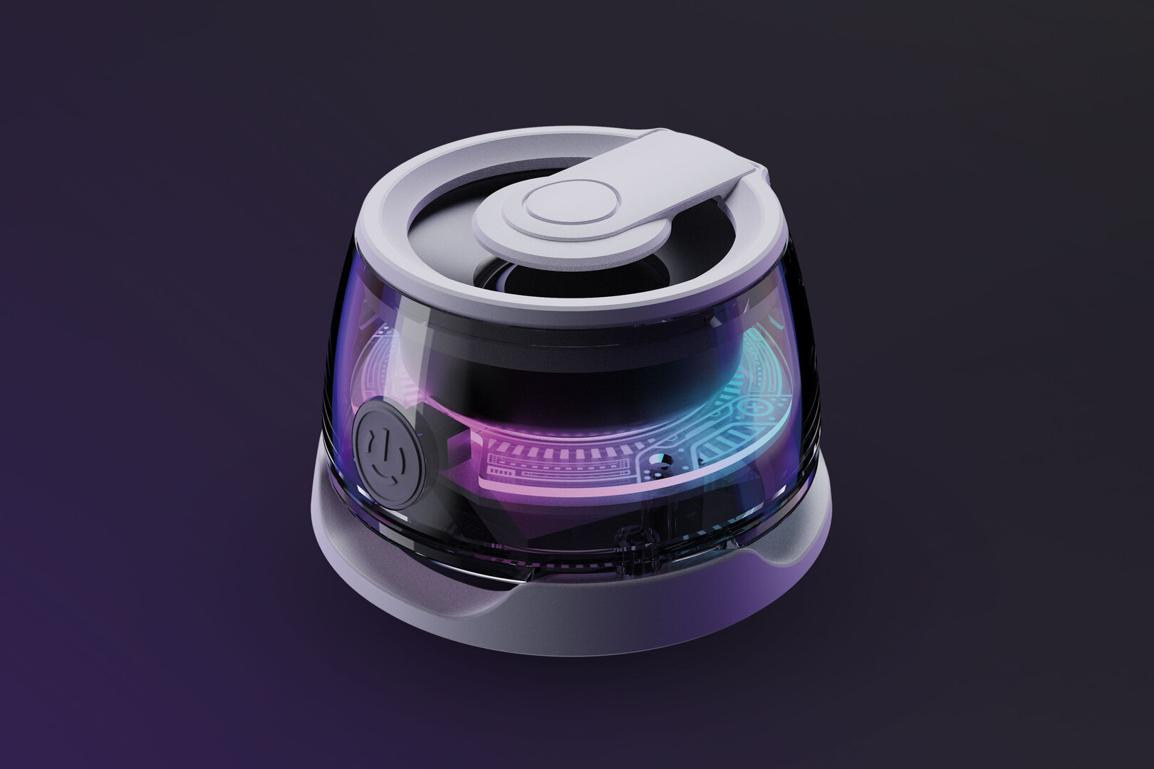 Mini Magnetic Bluetooth Speaker incorporates a magnetic function into a Bluetooth speaker while employing transparent materials and an innovative design of RGB lighting effects that allow people to see the internal components. Users should be able to see, hear, and feel the sound as it floats in front of them.