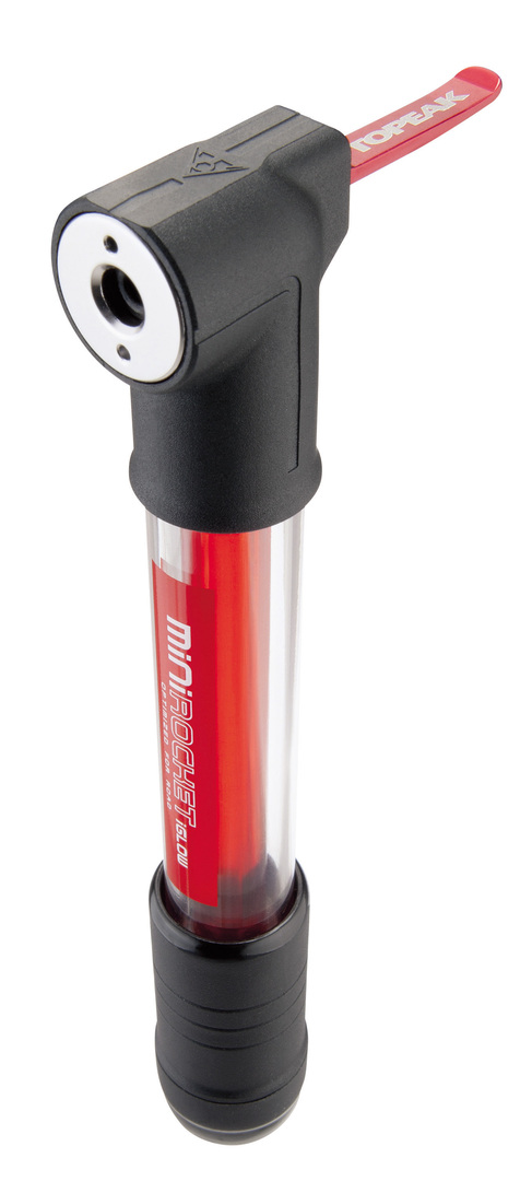 The MiniRocket iGlow, a combination of illumination and pump, is especially suitable for use in inclement weather and also enhances safety while riding. The mini pump features a transparent barrel with optical fibre technology, which emits a beam of red LED light at a radiation angle of 360 degrees, thus ensuring that the cyclist remains visible in traffic at all times. When needed, the pump also inflates tyres quickly and easily with air.