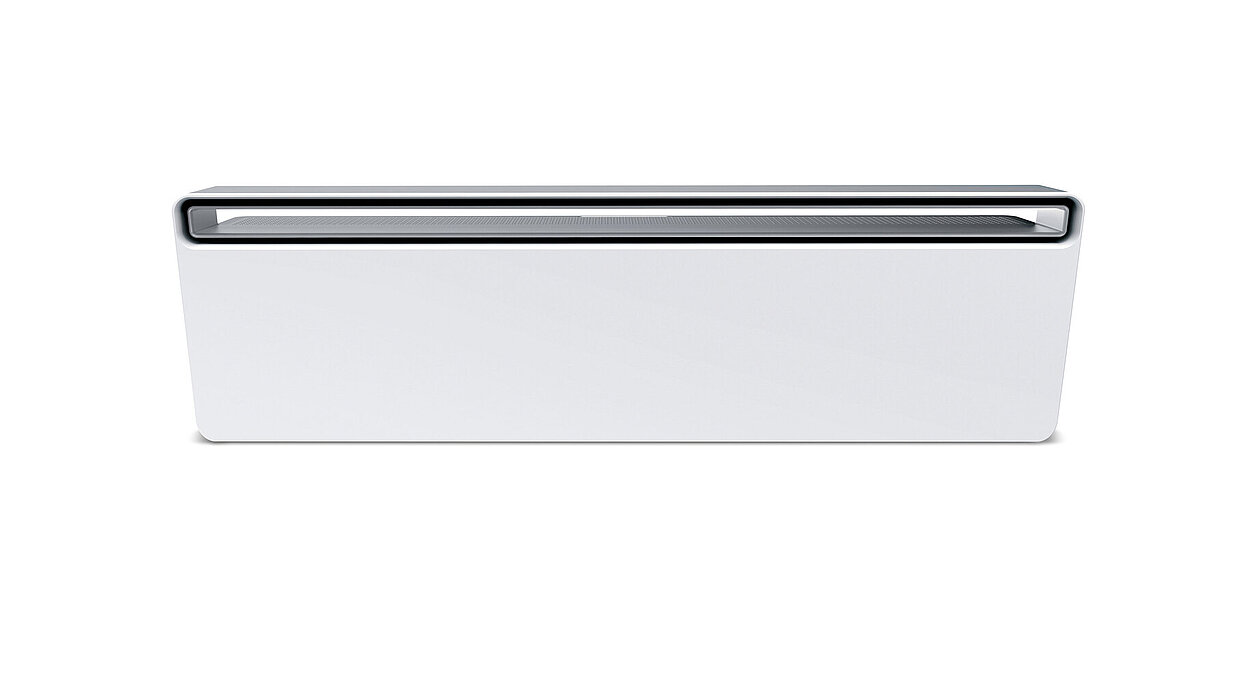 The profile of this air conditioner reveals an L-shaped design, lending the body a dynamic and modern appeal. This sophisticated shape also has a functional effect, as it creates an air space between the device and the wall so that the room air can enter the unit through a large air intake area at the back. This construction guarantees easy cleaning and prevents dust particles from entering the air conditioning unit.